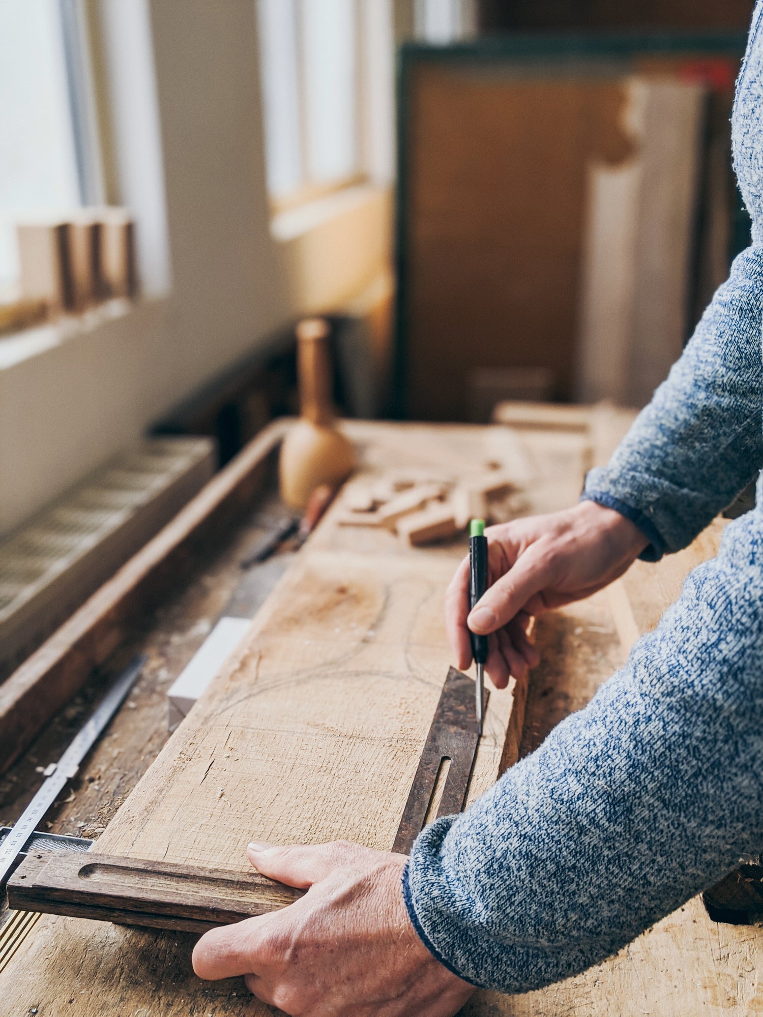 Inspiriert durch meine Heimat, dem Schwarzwald, fertige ich in meiner Landwerkstatt, einer ehemaligen Skifabrik in einem kleinen Dorf im Nordschwarzwald, besondere Unikate aus Holz in reiner Handarbeit an. Das verarbeitete Holz stammt ausschließlich aus nachhaltiger Forstwirtschaft der Region Schwarzwald.